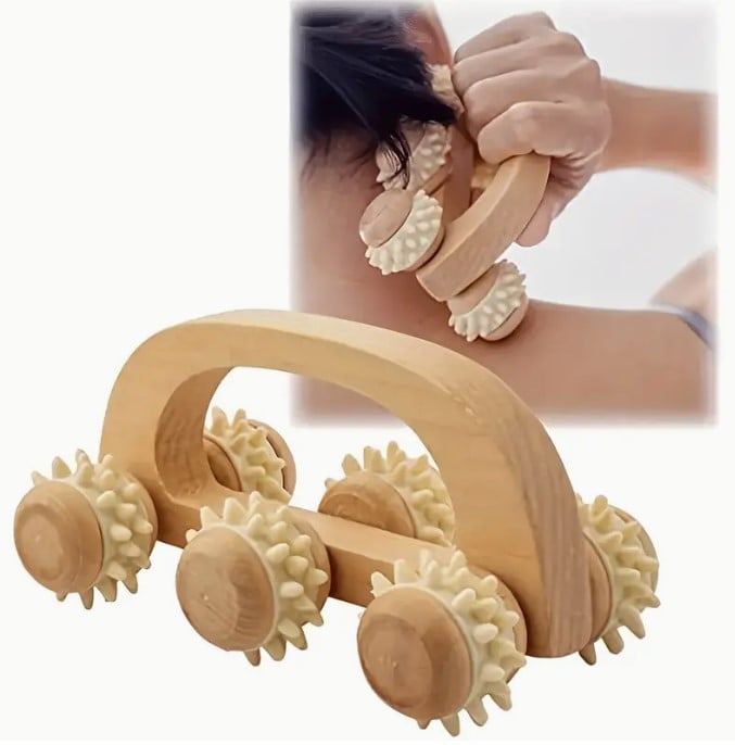 استمتع بتجربة مساج مريحة ومهدئة مع جهاز التدليك الخشبي ذو الستة عجلات.