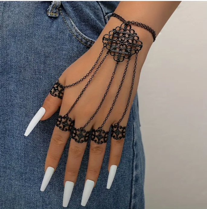 - تصميم مبتكر: سوار متصل بخمس خواتم، يلفت الأنظار ويضفي لمسة من الجاذبية والتميز.
